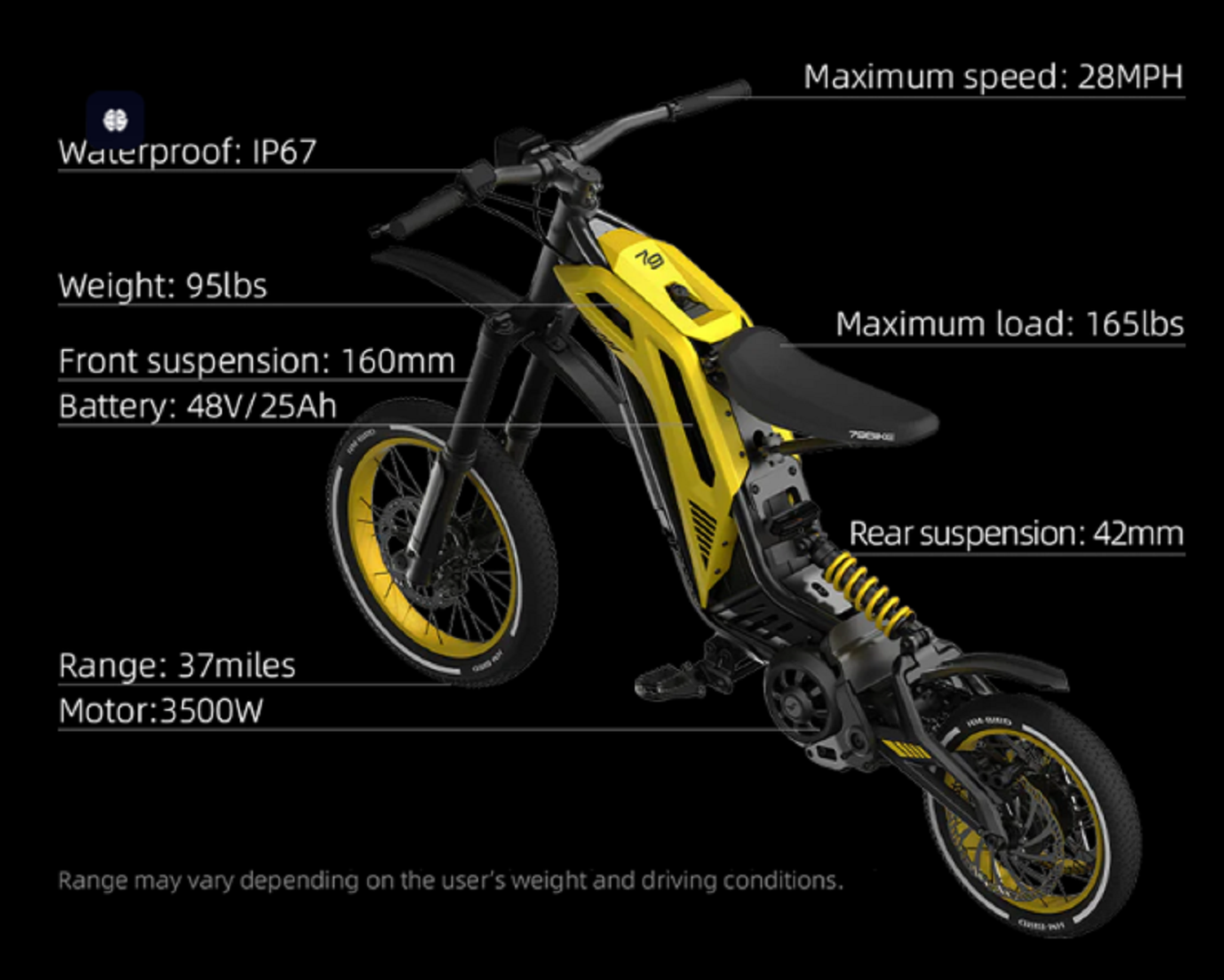 Powered by a high-performance 3500W motor and a 48V 25Ah battery, the Viper S delivers strong acceleration, impressive climbing ability, and long-lasting riding range—ideal for off-road adventures. The advanced Fastace front fork and rear shock suspension system ensure a smooth and controlled ride, even on rough terrain.