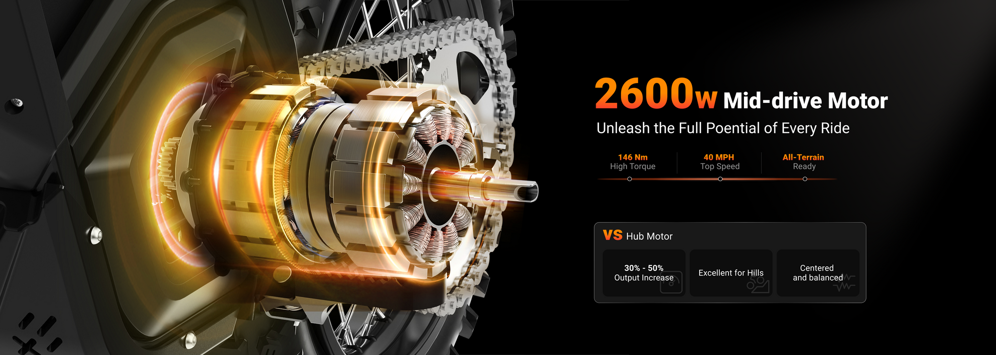 Our electric motorcycles are equipped with high-performance motors(mid-drive motor)that deliver more powerful performance than similar products on the market.